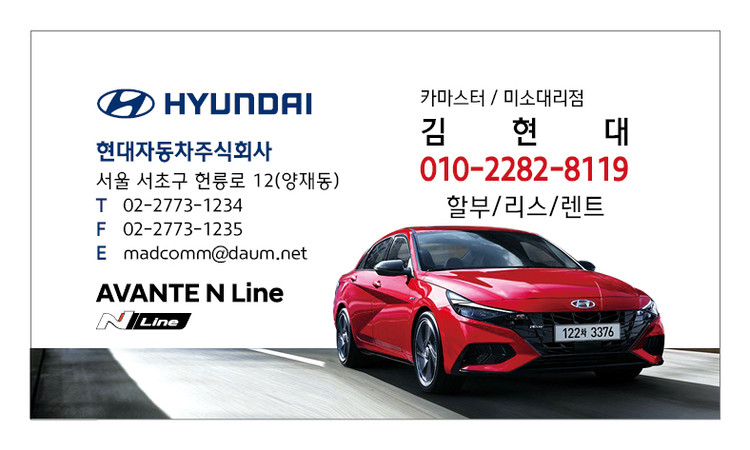 현대 차량형 명함